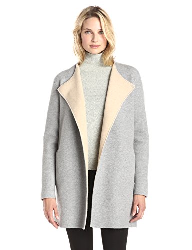 This beautiful pale cocoon coat by Vince Camuto is very appealing.  Although, most cocoon coats are not fitted, as they are well known for loose and oversized but the quality is great.  It is super chic and stylish.  The material is also very cozy.  This type of coat features funnel-collar, full zip closure with stylish snap faux flaps over each front pocket.  It’s made of 55% polyester, 41% wool, 4% other fiber and 100% polyester lining. Find out here for more information, different colours and size to choose with the best price and free shipping.